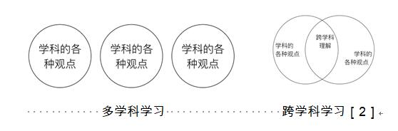 下面以圖示展示跨學科學習和多學科學習的區(qū)別: