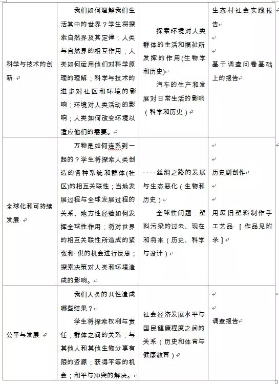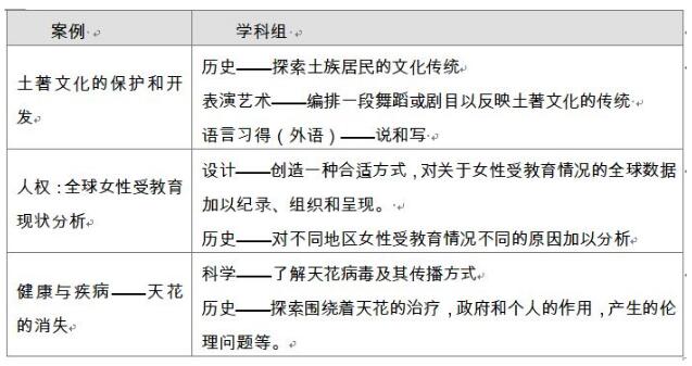 在實際教學過程中我們會發(fā)現(xiàn),有些主題并不適合以跨學科的方式開展高質(zhì)量的探究同時我們無法以單一學科的方式處理。學生需要整合兩個或更多學科的知識體來理解涉及多個方面的主題。以下為一些可供參考的案例: