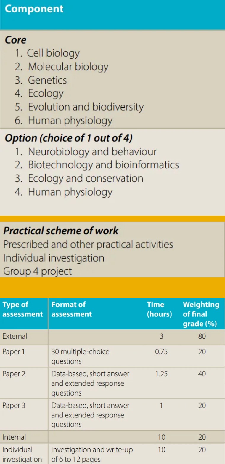 注意:無論學(xué)生是學(xué)HL還是SL課程都要從Options中選擇一個主題學(xué)習(xí)。當然,雖然主題一樣,但是與SL學(xué)生相比,HL學(xué)生還是需要在SL的基礎(chǔ)上再學(xué)些拓展內(nèi)容。