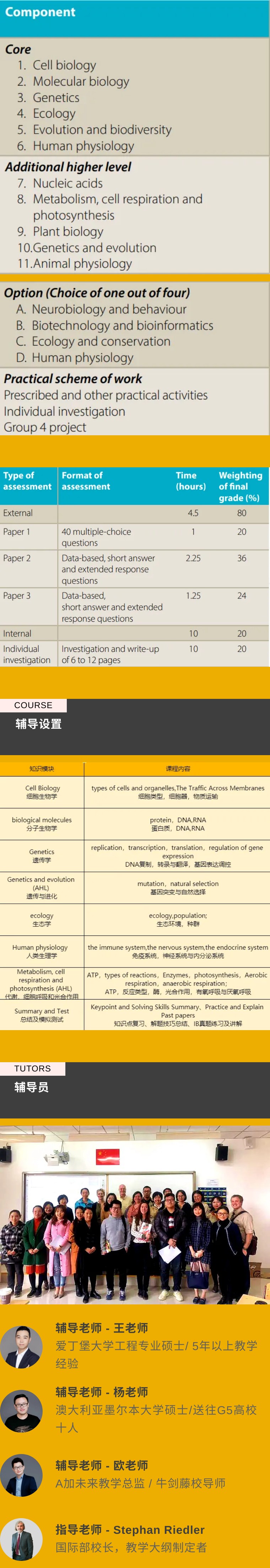 學(xué)習(xí)內(nèi)容:HL的課程內(nèi)容在SL的基礎(chǔ)上還要再學(xué)習(xí)以下更加深入拔高的內(nèi)容——核酸、代謝、細胞呼吸和光合作用、植物生物學(xué)、遺傳與進化、動物生理學(xué)。